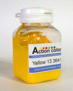 Cat Action Colour Yellow adalah warna untuk decal keramik yang membutuhkan suhu hanya 160-200 derajat. suatu terobosan bagi jasa promosi yang menginginkan hasil decal keramik atau gelas, tetapi tidak mempunyai oven keramik yang cukup mahal. Dan perlu anda ketahui bahwa pada oven decal keramik minimal suhu 620 derajat memakan waktu 2-3 jam lama pembakaran pada ukuran oven sedang. Pada oven listrik ukuran kecil . membutuhkan waktu 1 jam lamanya waktu pemanasan, pendinginannya 50-60 menit. Total hampir 2 jam pada oven kecil.